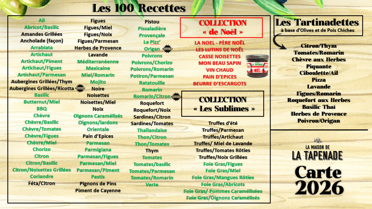 LA MAISON DE LA TAPENADE : 100 Recettes disponibles en marque blanche